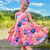 Hierbei handelt es sich um ein Schnittmuster inklusive bebilderter Nähanleitung für ein Drehkleid mit dekorativen Rückenausschnitt  in den Einzelgrößen 104, 110, 116, 122, 128, 134 und 140.